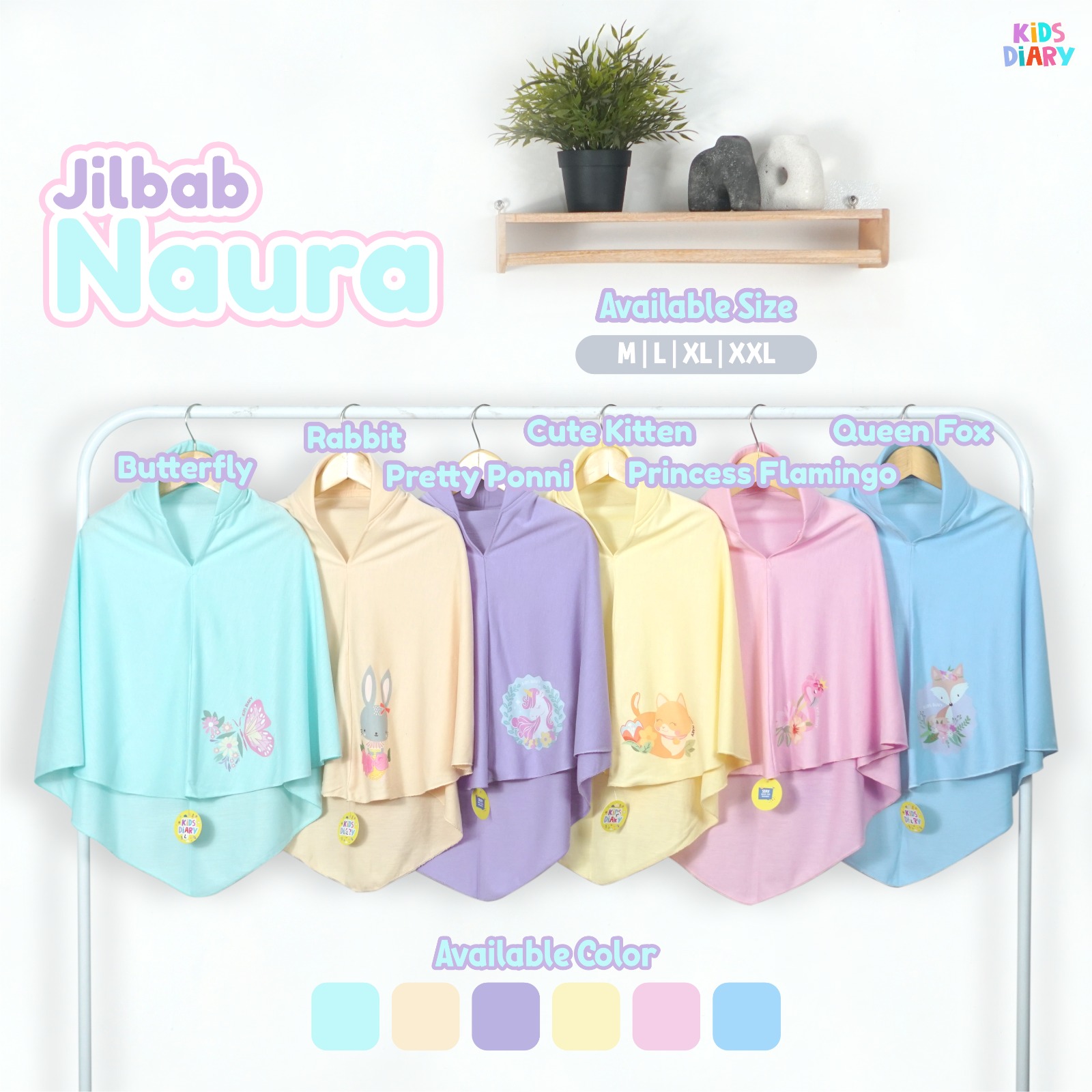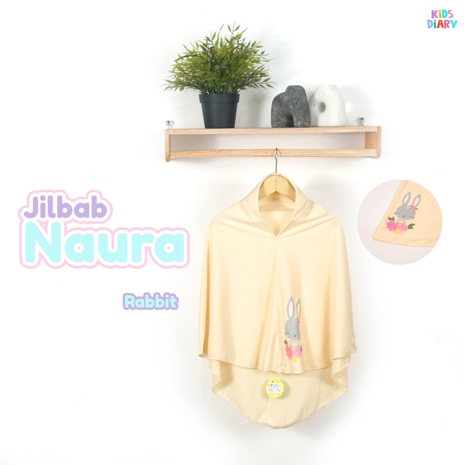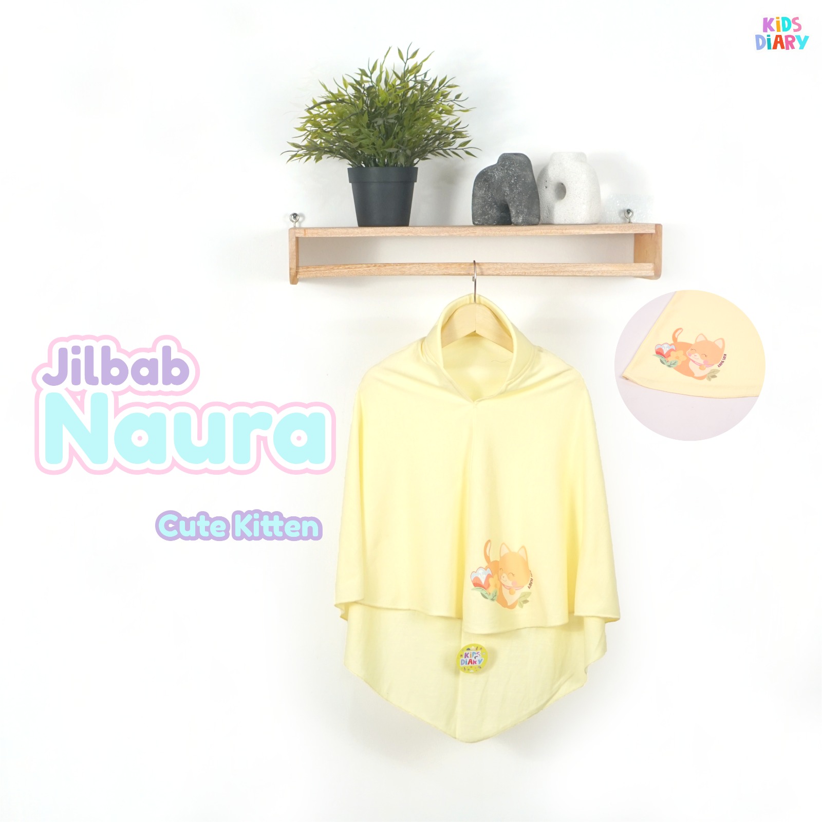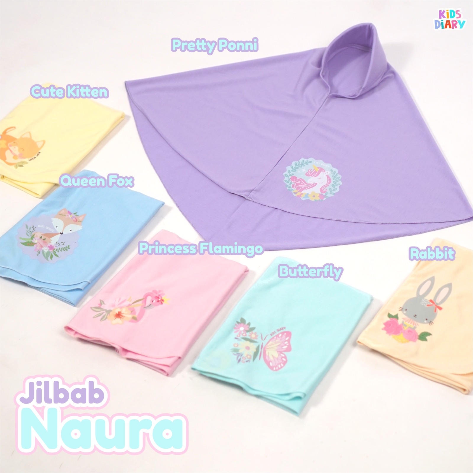 Desain : Menggunakan sablon DTF (warna solid, anti luntur, dan tidak mudah pecah) Jilbab ini terdapat softpet yang bisa membentuk wajah si kecil loh.